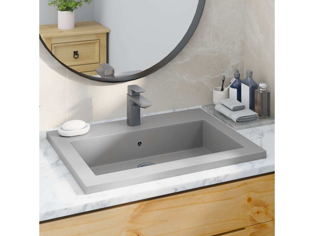Leštený granit a moderný dizajn umyvadla sa budú hodiť do každého priestoru. Odtok umožní, aby voda odtekala, keď je umývadlo plné. Umývadlo má aj otvor pre inštaláciu kohútika s priemerom 35 mm. Umývadlo sa jednoducho čistí.