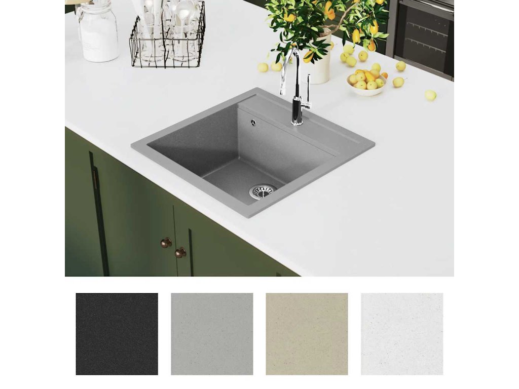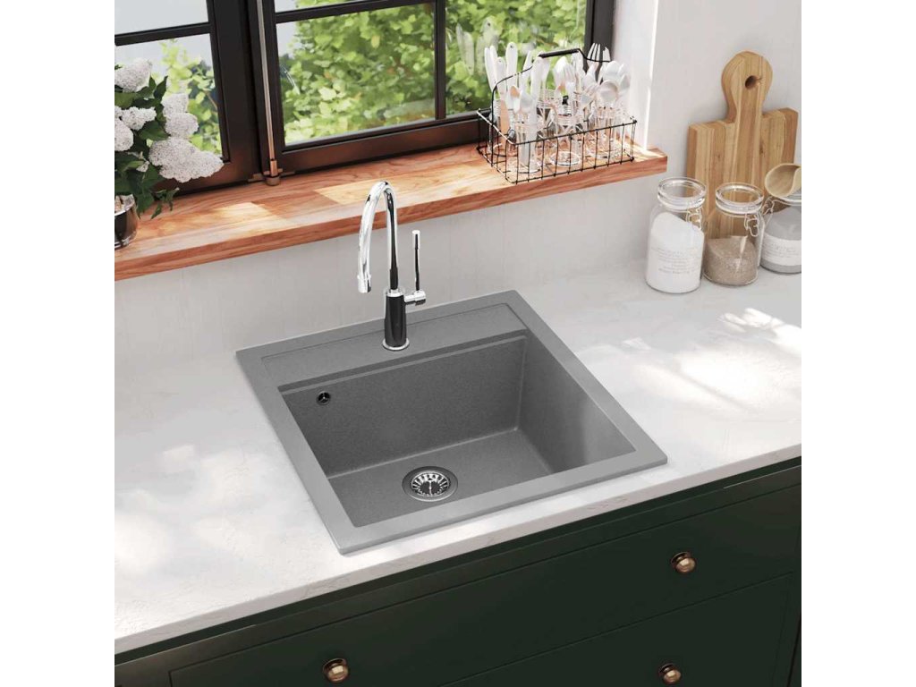 Vďaka vysokokvalitnému granitu je drez odolný voči teplu, poškriabaniu aj nárazom a dá sa ľahko očistiť. Otvor na inštaláciu batérie je už čiastočne navŕtaný a stačí ho len jednoducho vyklepať pomocou malého kladivka alebo okrúhleho nástroja v tvare trúbky. Ak už máte na kuchynskej linke nainštalovanú batériu, potom môžete ponechať otvor zakrytý. Súčasťou balenia je aj sitko do drezu na jednoduché odstraňovanie nečistôt.