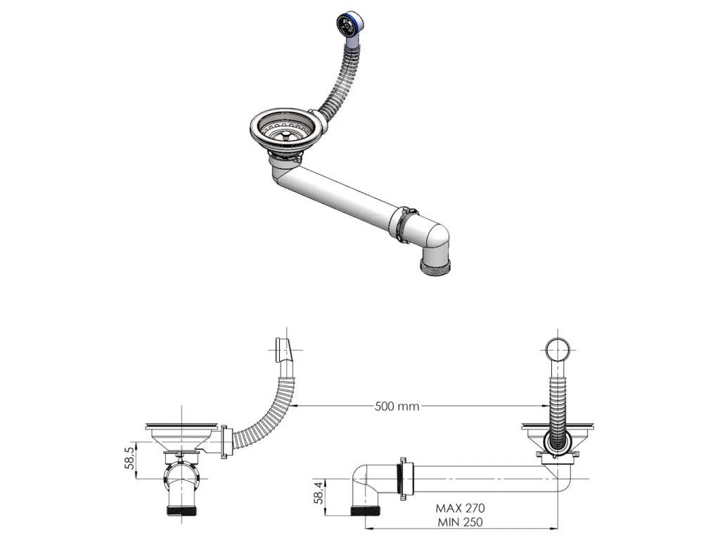 - Minimálny rozmer skrinky pod drez: 500 mm