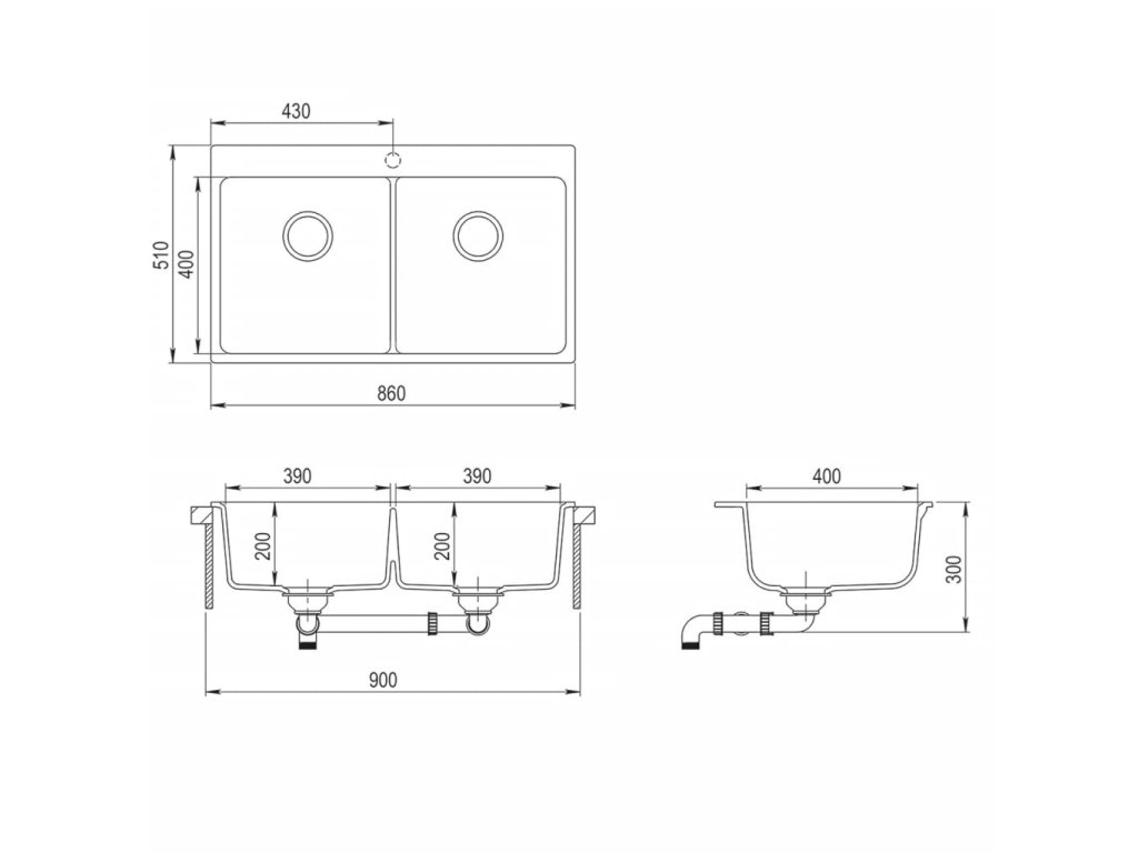 - Minimálny rozmer skrinky pod drez: 900 mm