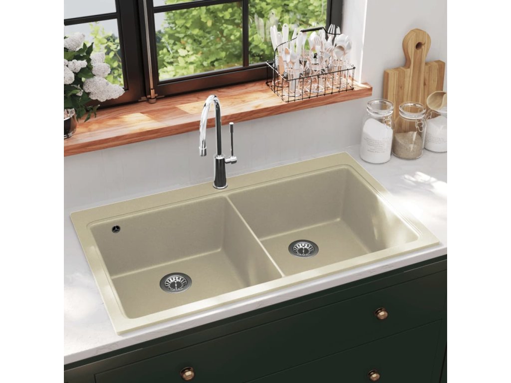 Náš granitový kuchynský drez bude praktickou a nadčasovou súčasťou vašej kuchyne. Má dve hlboké vaničky a úhľadný dizajn.