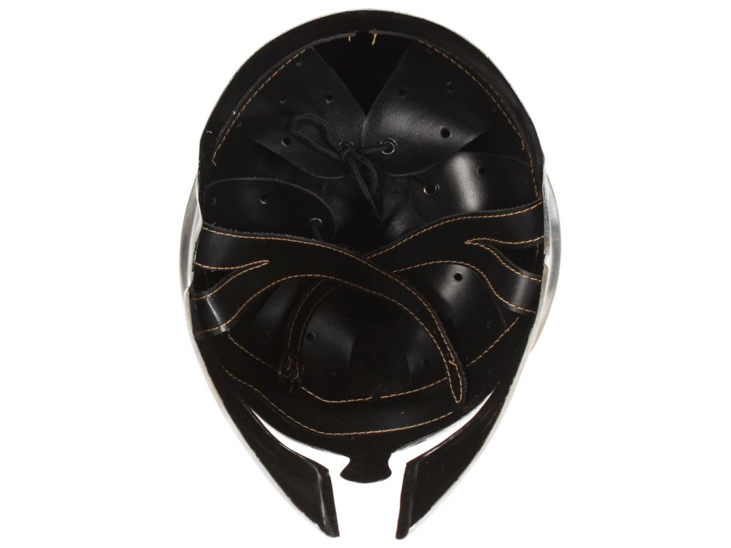 Pancierová prilba je presnou replikou pôvodnej gréckej prilby. Bola vyrobená z ocele s 18 gauge a kombinuje starožitný štýl a odolný materiál. Vzniká tak pútavá prilba, ktorá dokonale ladí s vašim rytierskym outfitom. Okrem toho sa jedná aj o pútavý výstavný kúsok.