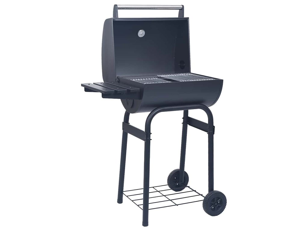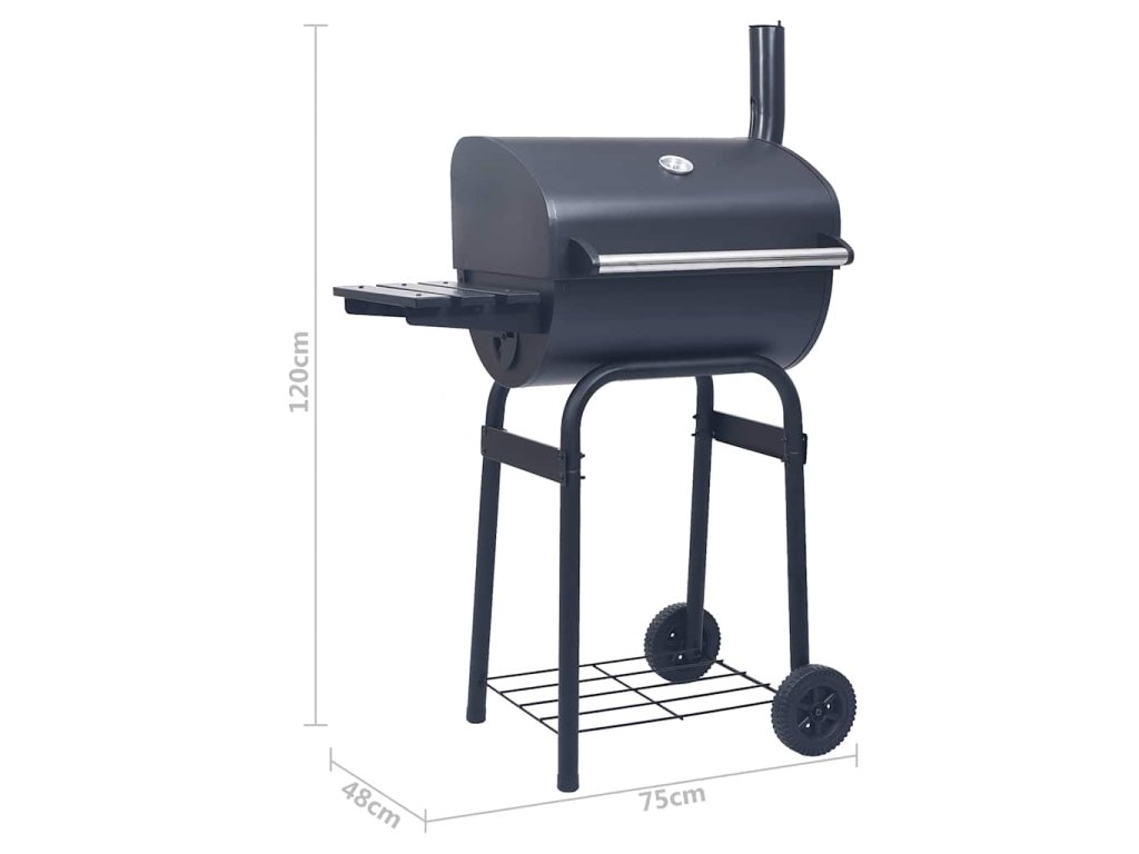 Tento gril používa ako palivo drevné uhlie, vďaka čomu je vhodný na grilovanie, opekanie a údenie. Teplotu v komore môžete monitorovať a regulovať pomocou teplomeru integrovaného na kryte a bočných vetracích otvorov. Vďaka oceľovému telu s práškovým nástrekom má náš gril elegantný a štýlový dizajn a je veľmi odolný. Tento gril je vybavený 2 kolieskami pre jednoduché premiestňovanie. Tento gril je nepostrádateľnou súčasťou pre vaše vonkajšie aktivity!