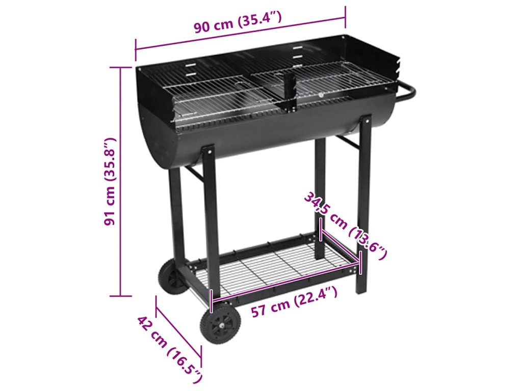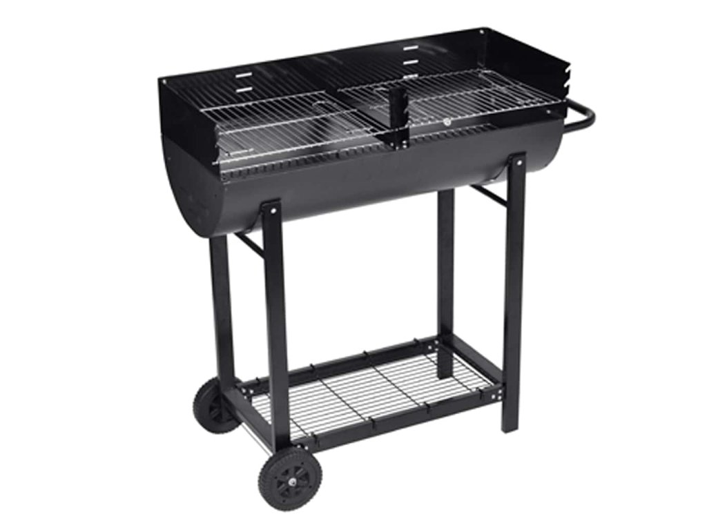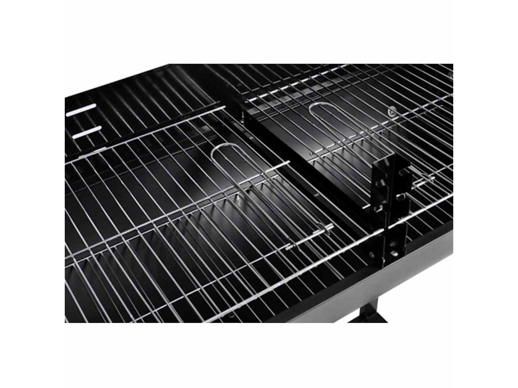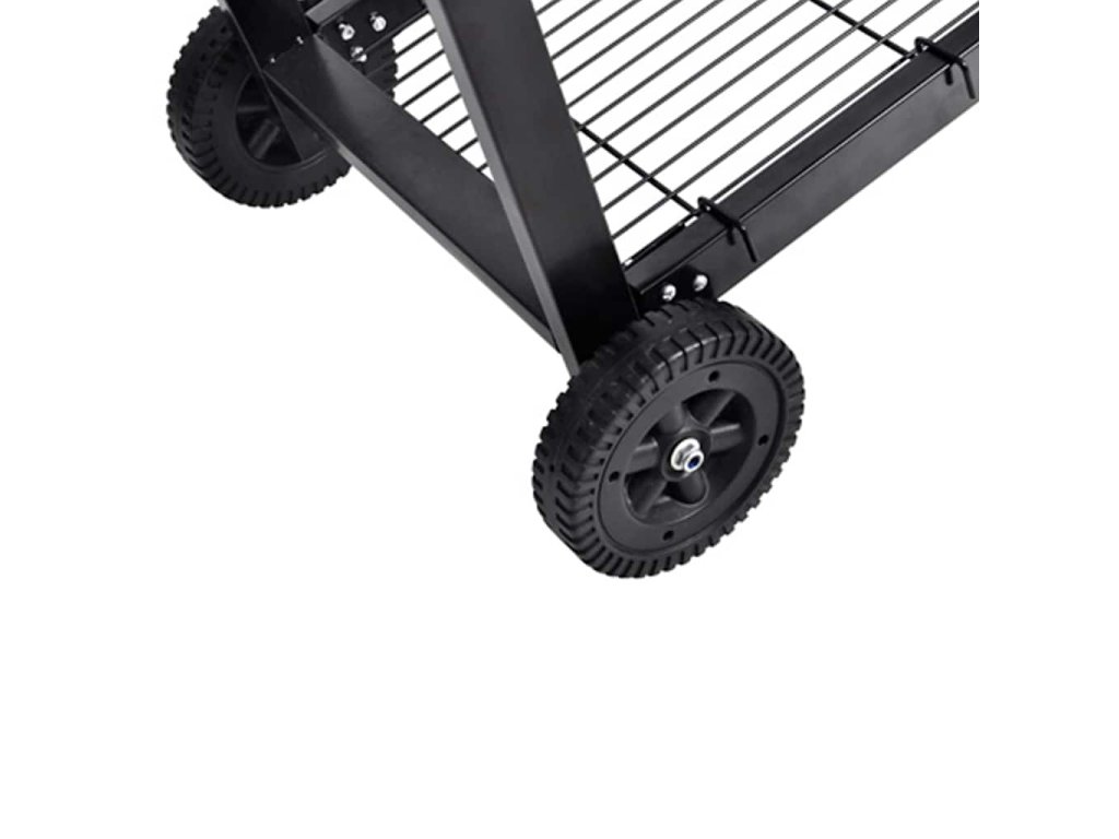 V balení sa nachádza dvojitý gril na uhlie a v jeho spodnej časti nájdete praktickú poličku na odkladanie grilovacích pomôcok. Gril na uhlie má dve kolieska, aby ste ho mohli jednoducho premiestňovať.