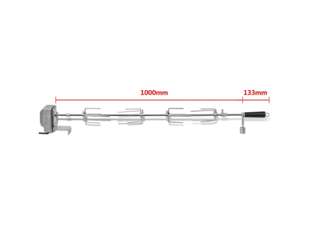 Motorizovaná špajla sa bude automaticky otáčať a zaručí rovnomernú tepelnú úpravu všetkého jedla, ktoré budete grilovať. Vidlice, ktoré sú upevnené pomocou skrutiek, majú nastaviteľné objímky a prispôsobia sa rôznym veľkostiam a tvarom. Ťažítko je súčasťou ražňa a dá sa dať na jednu stranu čím zaistí rovnomernú váhu zariadenia. Na výrobu boli použité vysokokvalitné materiály a ražeň sa ľahko udržiava a čistí.