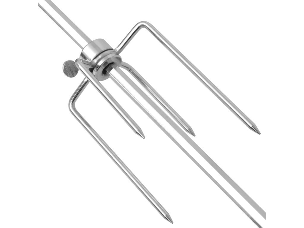 Motorizovaná špajla sa bude automaticky otáčať a zaručí rovnomernú tepelnú úpravu všetkého jedla, ktoré budete grilovať. Vidlice, ktoré sú upevnené pomocou skrutiek, majú nastaviteľné objímky a prispôsobia sa rôznym veľkostiam a tvarom. Ťažítko je súčasťou ražňa a dá sa dať na jednu stranu čím zaistí rovnomernú váhu zariadenia. Na výrobu boli použité vysokokvalitné materiály a ražeň sa ľahko udržiava a čistí.
