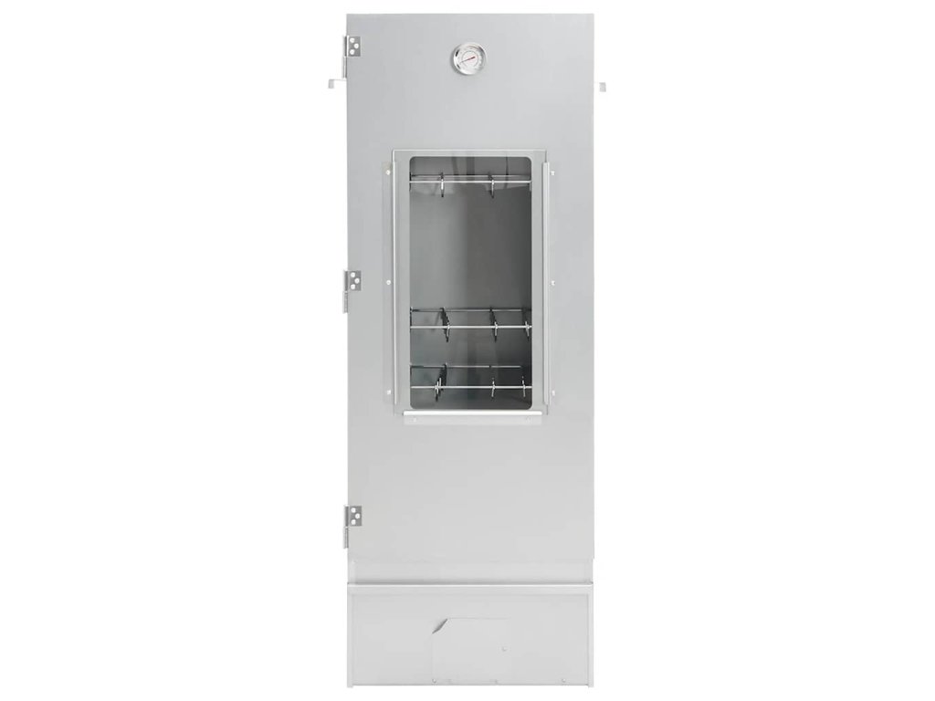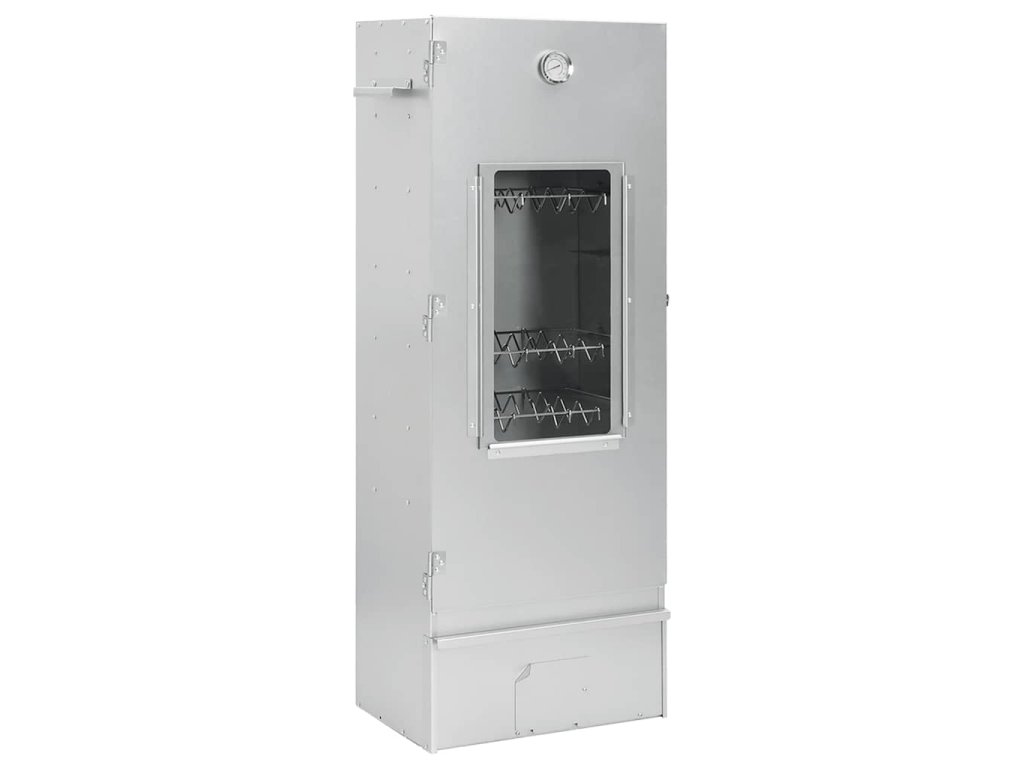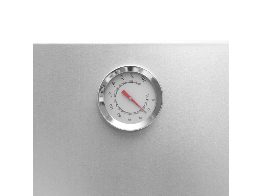 - Orientačná funkcia: Udiarenská rúra je vybavená teplomerom na kontrolu teploty komory. Môžete tiež sledovať jedlo vo vnútri, aby ste si zaistili to najlepšie grilovanie vďaka sklenenému okienku udiarne.