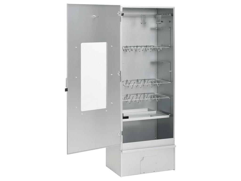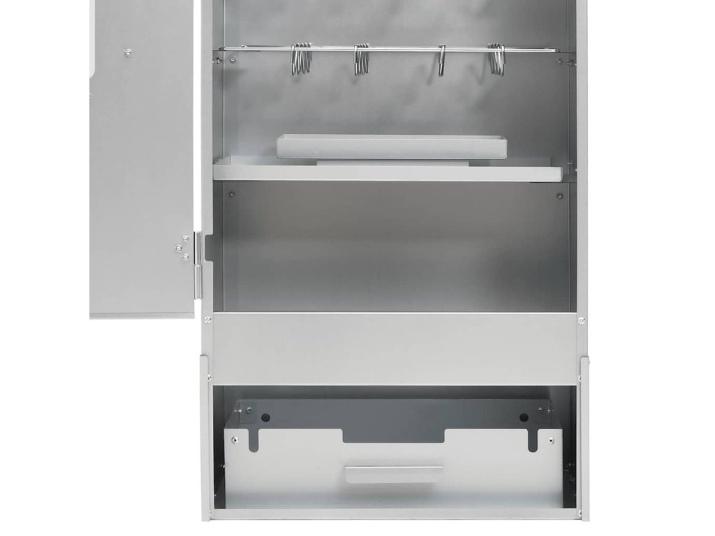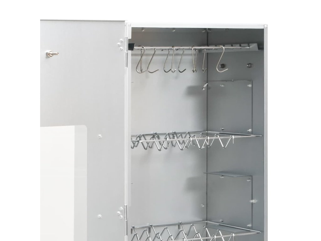 - Veľký priestor na údenie: Vonkajšia udiareň poskytuje dostatok priestoru na údenie mäsa, rýb, klobás atď. Háčiky a mriežky v tvare S, ktoré sú súčasťou balenia, uľahčia vaše grilovanie.
