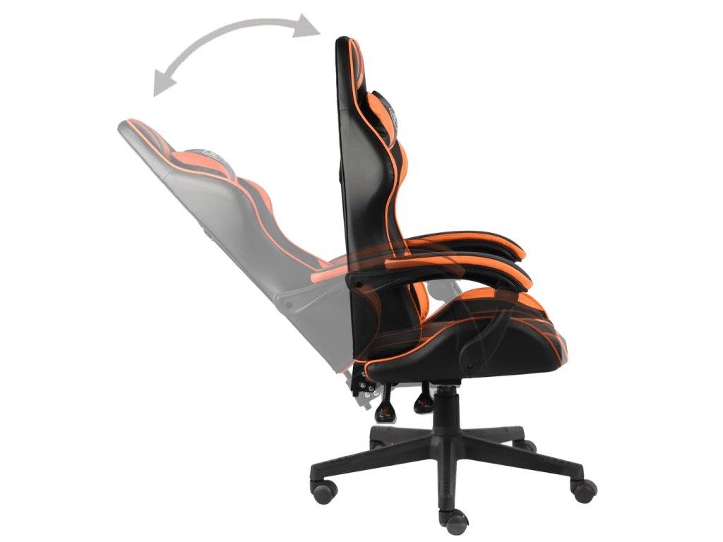 Táto herná stolička je vyrobená z odolnej umelej kože a je mäkká na dotyk. Stolička je vybavená pohodlnou nahusto polstrovanou sedačkou a vysokým operadlom. Výšku sedadla je možné rýchlo prispôsobiť osobným požiadavkám, zatiaľ čo 360 stupňové otáčanie a dizajn s 5 kolieskami uľahčujú jej presúvanie. V úplne naklonenej polohe budete mať pocit, akoby ste sa vznášali, takže je ideálna na hranie. Sklápacia stolička s opierkou hlavy, bedrovým vankúšom a lakťovými opierkami povýši pohodlie na úplne novú úroveň.