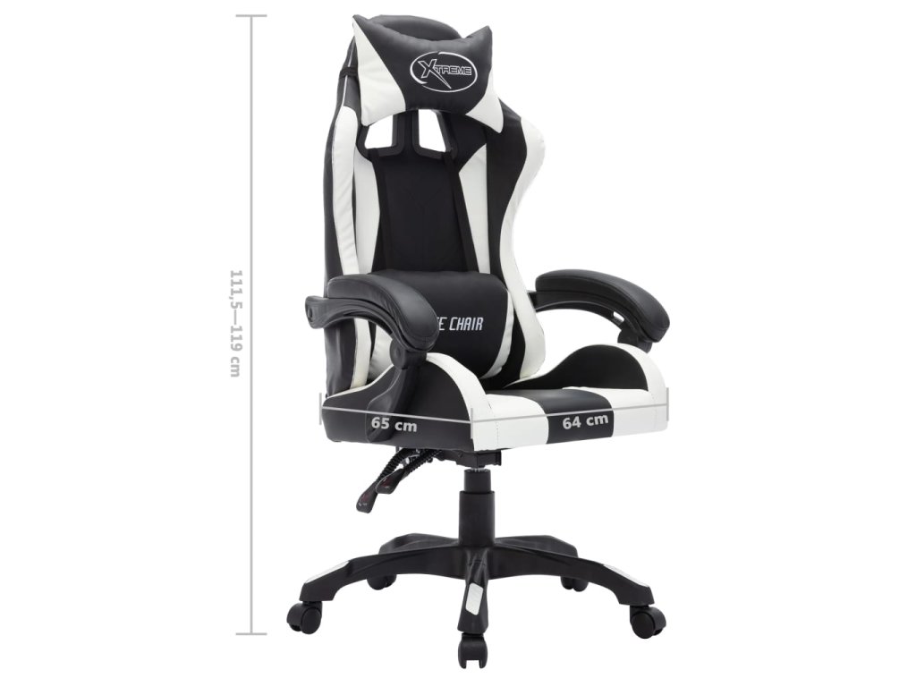Táto herná stolička je čalúnená umelou kožou, takže sa ľahko čistí. Vankúš za hlavu s hustou výplňou a podložka v oblasti pásu poskytujú dodatočné pohodlie počas náročného pracovného dňa. Výška kancelárskej stoličky sa dá nastaviť pomocou plynového piestu. Stolička sa dá navyše aj sklápať - ak si chcete zdriemnuť, stačí operadlo sklopiť do plne vodorovnej polohy. Stolička je otočná v rozsahu 360 stupňov a je vybavená 5 otočnými kolieskami, vďaka čomu sa dá jednoducho premiestniť. Táto herná stolička je čalúnená umelou kožou, takže sa ľahko čistí.