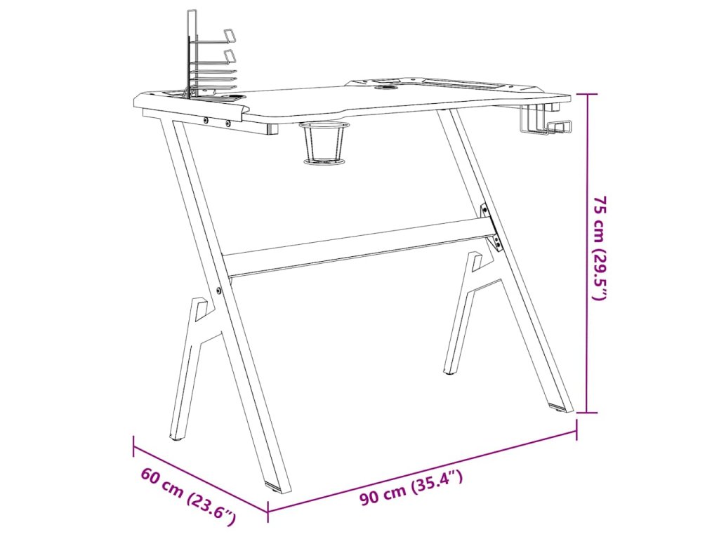 Efektívny ergonomický dizajn ponúka perfektnú pozíciu na hranie, vďaka čomu budete môcť hrať dlhšie a lepšie! Tento počítačový stôl obsahuje držiak na slúchadlá a držiak na ovládač, vďaka čomu budete mať slúchadlá na dosah ruky. Má tiež držiak pohára na uloženie nápojov. Poskytuje veľký priestor pre monitory, PC, herné klávesnice a ďalšie herné vybavenie. Navyše, vďaka železnému dizajnu nôh v tvare Y je stabilný a dokáže splniť akékoľvek náročné požiadavky hráča.