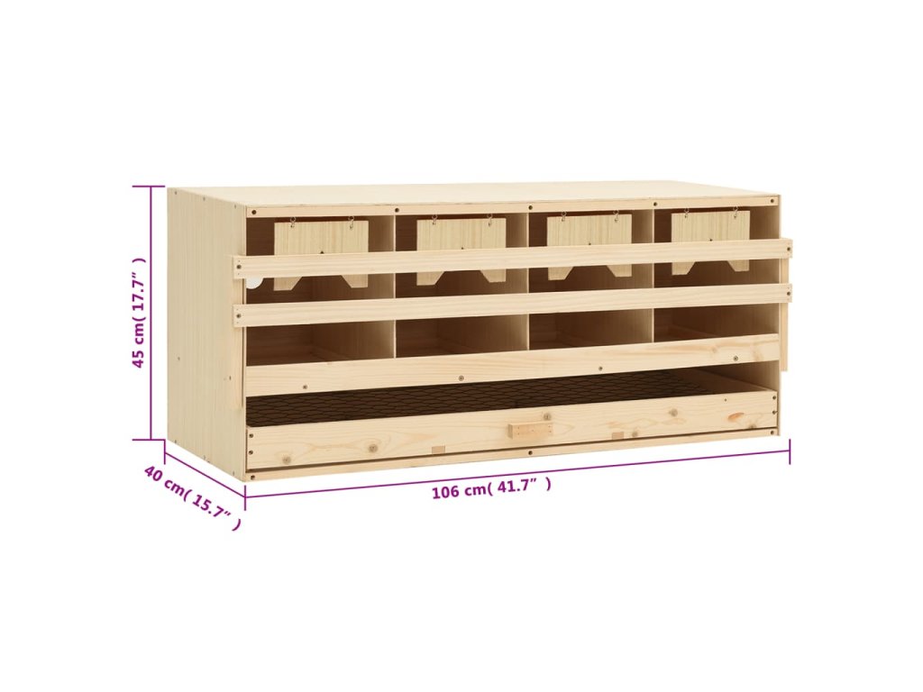 Hniezdo pre hydinu je vyrobené z borovicového masívu a preglejky a je určené na dlhodobé používanie. Búdka na hniezdenie sa jednoducho montuje.