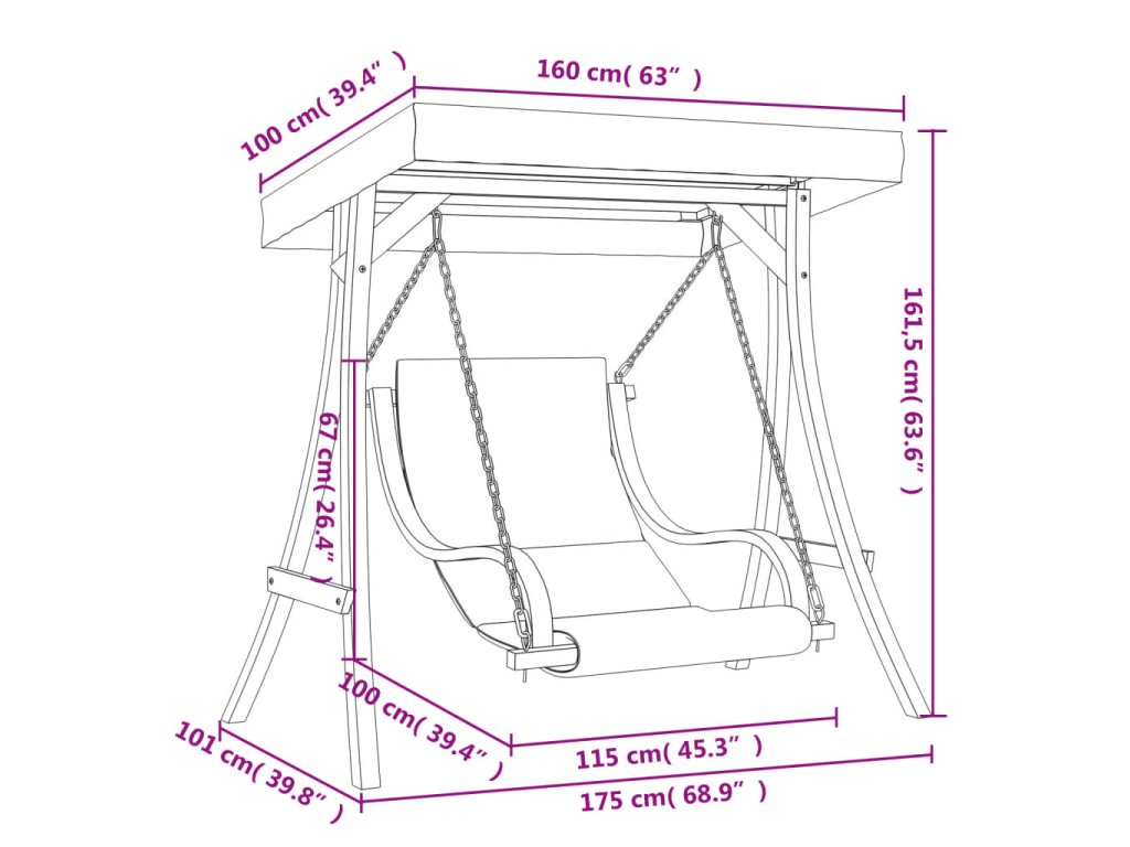 - Rozmery hojdacej stoličky: 115 x 100 x 67 cm (Š x H x V)