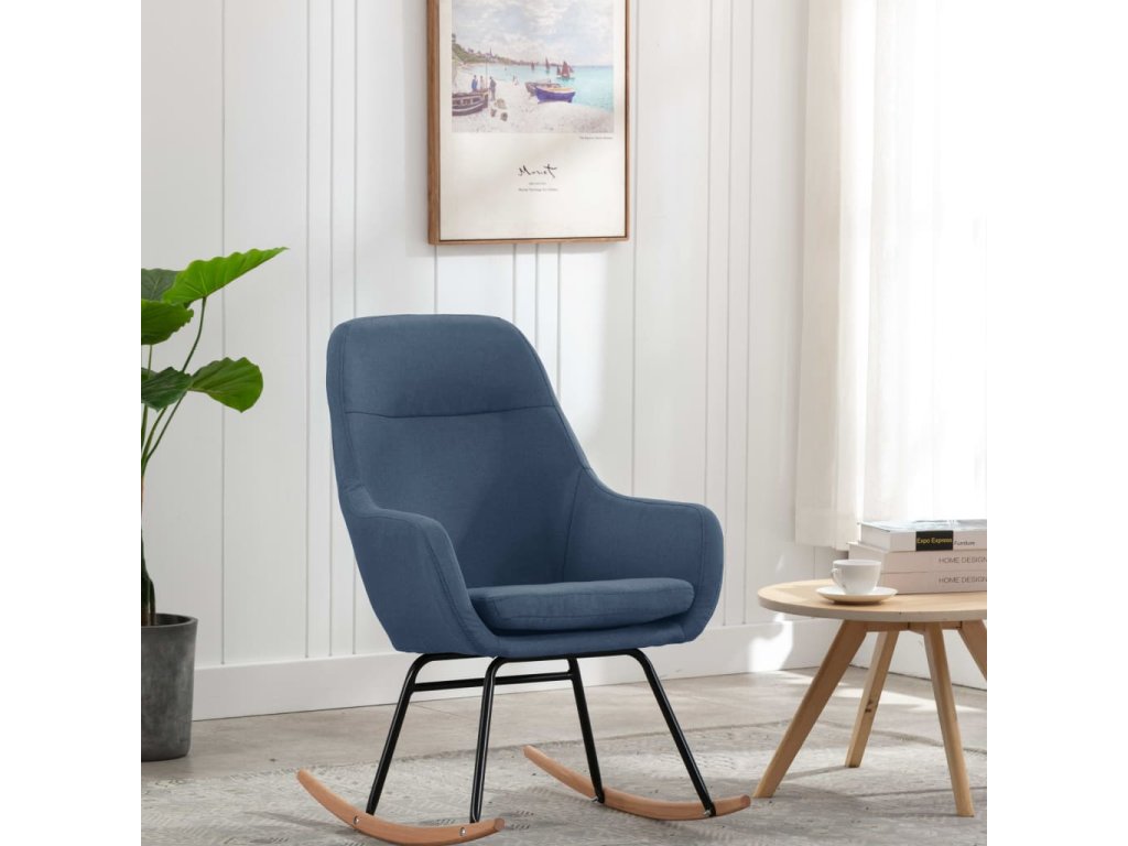 Hojdacie kreslo má mäkký látkový poťah a kovový rám s práškovou povrchovou úpravou, vďaka čomu je stabilné a mäkké, aby sa vám na ňom sedelo naozaj príjemne. Podložka s hustou výplňou, ktorá sa dá vybrať a oprať, poskytuje optimálne pohodlie pri sedení. Nohy z bukového dreva prinášajú vysokú stabilitu a vďaka dizajnu s dlhými nohami sa kreslo len tak ľahko neprevráti.