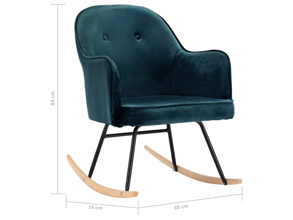 Hojdacie kreslo má zamatový poťah a železný rám s práškovou povrchovou úpravou, vďaka čomu je stabilné a mäkké, aby sa vám na ňom sedelo naozaj príjemne. Sedadlo s hustou výplňou poskytuje optimálne pohodlie pri sedení. Nohy z bukového dreva prinášajú vysokú stabilitu a vďaka dizajnu s dlhými nohami sa kreslo len tak ľahko neprevráti.