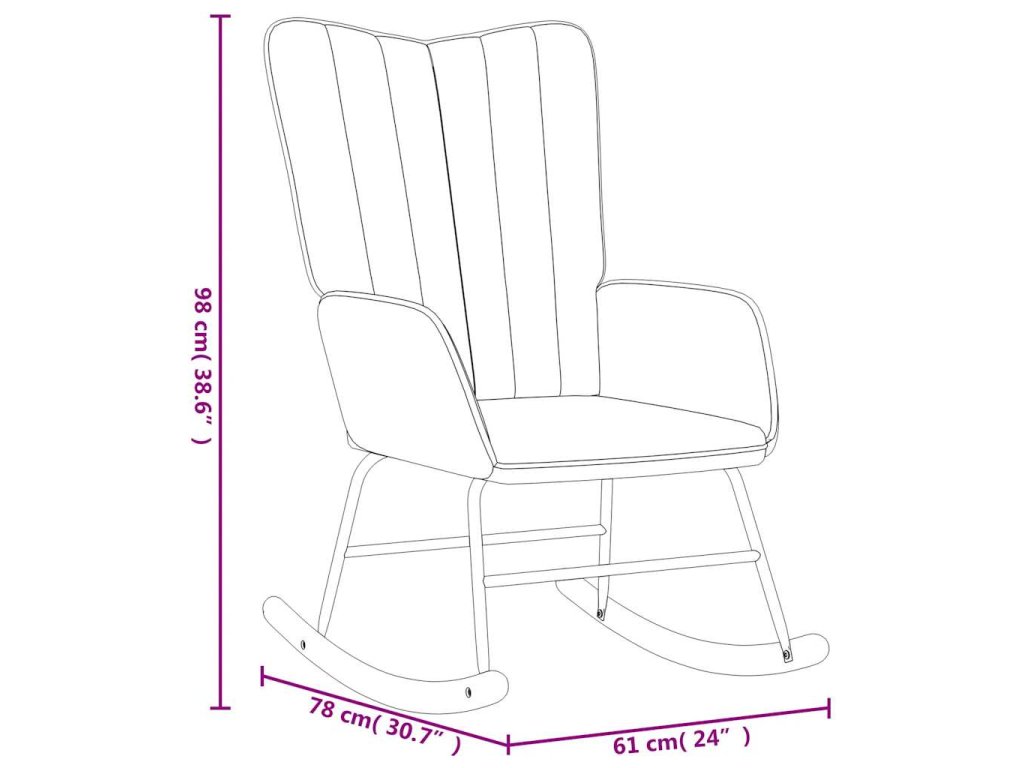 Toto kreslo s ozdobnými líniami na operadle pôsobí veľmi elegantne. Poťah z na dotyk mäkkého zamatu s molitanovým polstrovaním vám poskytne optimálne pohodlie pri sedení. Vďaka dlhým hojdacím lyžinám sa relaxačné kreslo len tak ľahko neprevrhne. Kreslo do obývačky je navyše podopreté oceľovým rámom a nohami, ktoré mu spolu s drevenými hojdacími lyžinami dodávajú potrebnú stabilitu a trvácnosť.