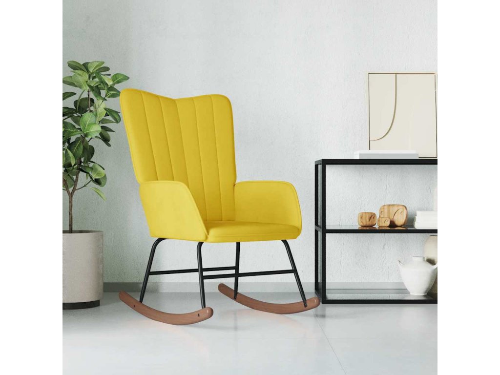 Toto kreslo s ozdobnými líniami na operadle pôsobí veľmi elegantne. Poťah z na dotyk mäkkého zamatu s molitanovým polstrovaním vám poskytne optimálne pohodlie pri sedení. Vďaka dlhým hojdacím lyžinám sa relaxačné kreslo len tak ľahko neprevrhne. Kreslo do obývačky je navyše podopreté oceľovým rámom a nohami, ktoré mu spolu s drevenými hojdacími lyžinami dodávajú potrebnú stabilitu a trvácnosť.