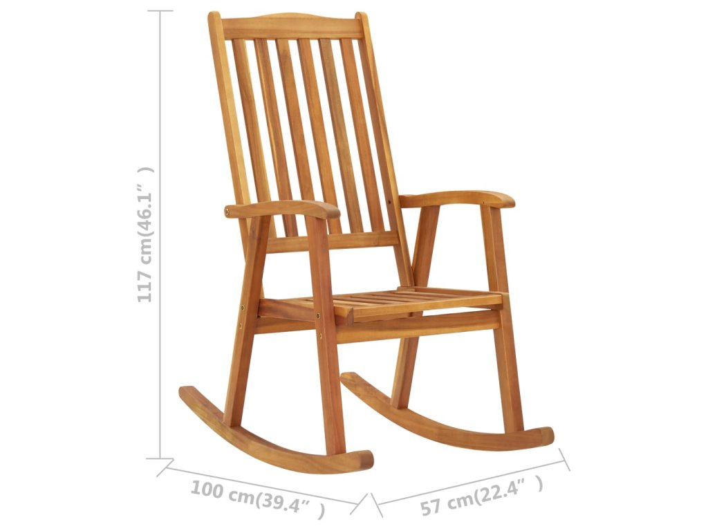 Táto hojdacia stolička vyrobená z masívneho akáciového dreva vyniká svojou trvanlivosťou a odolnosťou voči poveternostným vplyvom. Vysoké operadlo zvyšuje pohodlie pri sedení. Hojdacie kreslo môžete umiestniť do svojej obývačky alebo na vonkajšiu terasu a vychutnať si skvelú knihu či šálku kávy. Pribalený vankúš navyše poskytuje extra pohodlie pri leňošení. Je vyrobený zo 100 % polyesteru, ktorý bol upravený tak, aby bol odolný voči vode. Každý vankúš má gumičku a dve sady šnúrok, ktoré ho pevne pripevnia na stoličku.