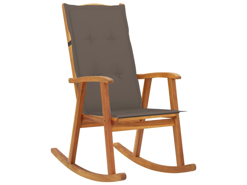 Táto hojdacia stolička vyrobená z masívneho akáciového dreva vyniká svojou trvanlivosťou a odolnosťou voči poveternostným vplyvom. Vysoké operadlo zvyšuje pohodlie pri sedení. Hojdacie kreslo môžete umiestniť do svojej obývačky alebo na vonkajšiu terasu a vychutnať si skvelú knihu či šálku kávy. Pribalený vankúš navyše poskytuje extra pohodlie pri leňošení. Je vyrobený zo 100 % polyesteru, ktorý bol upravený tak, aby bol odolný voči vode. Každý vankúš má gumičku a dve sady šnúrok, ktoré ho pevne pripevnia na stoličku.