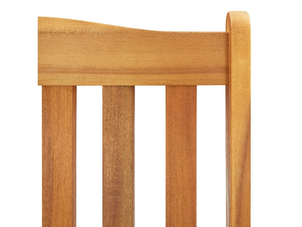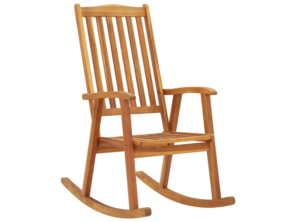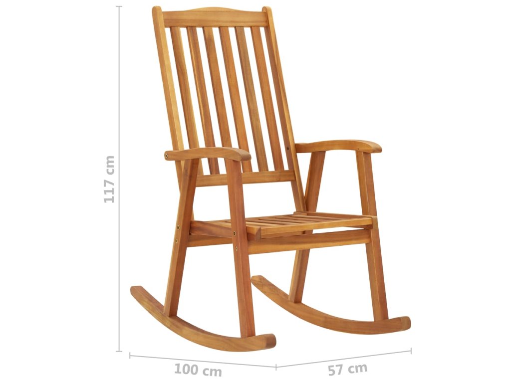 Táto hojdacia stolička vyrobená z masívneho akáciového dreva vyniká svojou trvanlivosťou a odolnosťou voči poveternostným vplyvom. Vysoké operadlo zvyšuje pohodlie pri sedení. Hojdacie kreslo môžete umiestniť do svojej obývačky alebo na vonkajšiu terasu a vychutnať si skvelú knihu či šálku kávy. Pribalený vankúš navyše poskytuje extra pohodlie pri leňošení. Je vyrobený zo 100 % polyesteru, ktorý bol upravený tak, aby bol odolný voči vode. Každý vankúš má gumičku a dve sady šnúrok, ktoré ho pevne pripevnia na stoličku.
