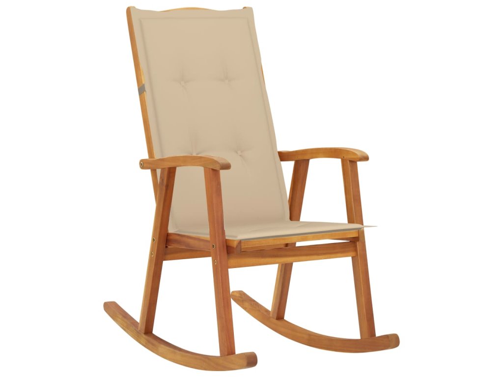 Táto hojdacia stolička vyrobená z masívneho akáciového dreva vyniká svojou trvanlivosťou a odolnosťou voči poveternostným vplyvom. Vysoké operadlo zvyšuje pohodlie pri sedení. Hojdacie kreslo môžete umiestniť do svojej obývačky alebo na vonkajšiu terasu a vychutnať si skvelú knihu či šálku kávy. Pribalený vankúš navyše poskytuje extra pohodlie pri leňošení. Je vyrobený zo 100 % polyesteru, ktorý bol upravený tak, aby bol odolný voči vode. Každý vankúš má gumičku a dve sady šnúrok, ktoré ho pevne pripevnia na stoličku.