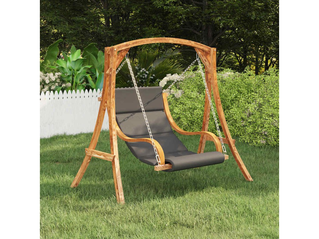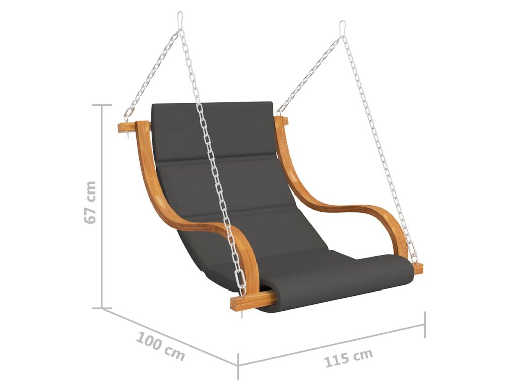 Hojdačka je vyrobená z ohýbaného masívu, ktorý je pevný a vhodný do exteriéru. Tíková povrchová úprava hojdačke dodáva jedinečný vzhľad. Egonomicky tvarované sedadlo vám prinesie optimálne pohodlie pri relaxovaní. Ruky si môžete položiť na zaoblené opierky. Podložka s hustou výplňou je mäkká a postará sa o to, aby vás pri sedení na hojdačke nič nebolelo.