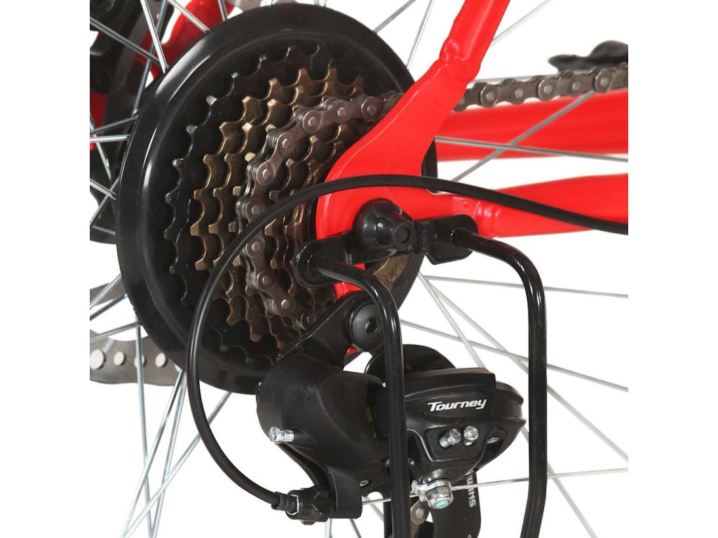 Oceľový rám a odpružená vidlica zabezpečujú hladkú jazdu, zatiaľ čo pevné a ľahké hliníkové ráfiky poskytujú zvýšenú stabilitu. Ďalšou skvelou funkciou je 21-stupňový prevod s prednou a zadnou prehadzovačkou. Sedlovka sa dá nastaviť bez použitia náradia, čo uľahčuje prispôsobenie bicykla vašej postave. Do kopca alebo z kopca môžete jazdiť s ľahkosťou. Kotúčové brzdy sú navrhnuté tak, aby umožňovali rýchlo zabrzdiť za každých podmienok.