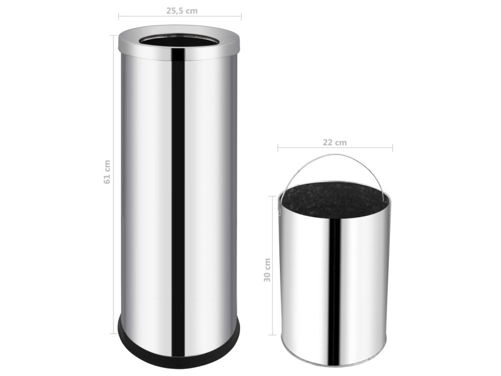 Tento odpadkový kôš z veľmi hrubej nehrdzavejúcej ocele je odolný voči nárazom a deformácii, nehrdzavie a bude vám preto spoľahlivo slúžiť po dlhé roky. Široký otvor koša umožňuje pohodlné vyhadzovanie odpadkov. Vnútorná nádoba je vyberateľná pre jednoduché vyprázdňovanie koša.