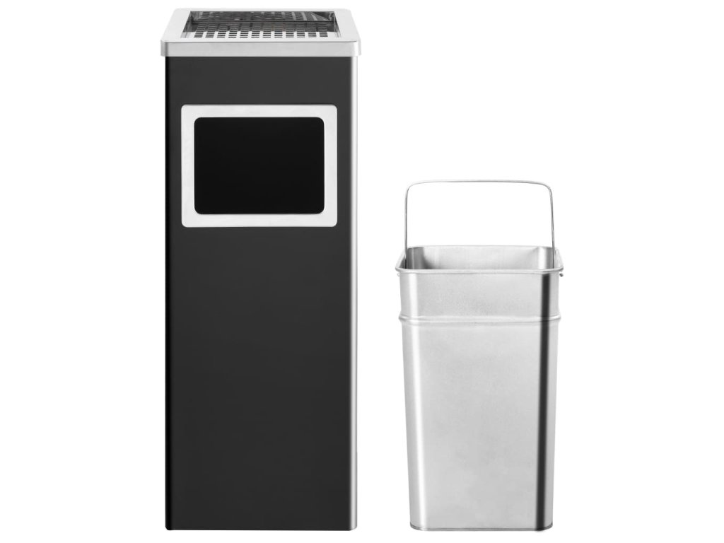 Náš kvalitný odpadkový kôš sa vyznačuje elegantným oceľovým dizajnom s popolníkom a má nielen sofistikovaný dizajn, ale zaboduje aj svojou funkčnosťou. Odpadkový kôš má objemnú nádobu na odpadky a navyše je v hornej časti vybavený popolníkom, ktorý je vhodný na použitie vo vnútorných aj vonkajších priestoroch, ako napr. v hoteloch, reštauráciách, pred domom, kanceláriou či na iných verejných miestach.