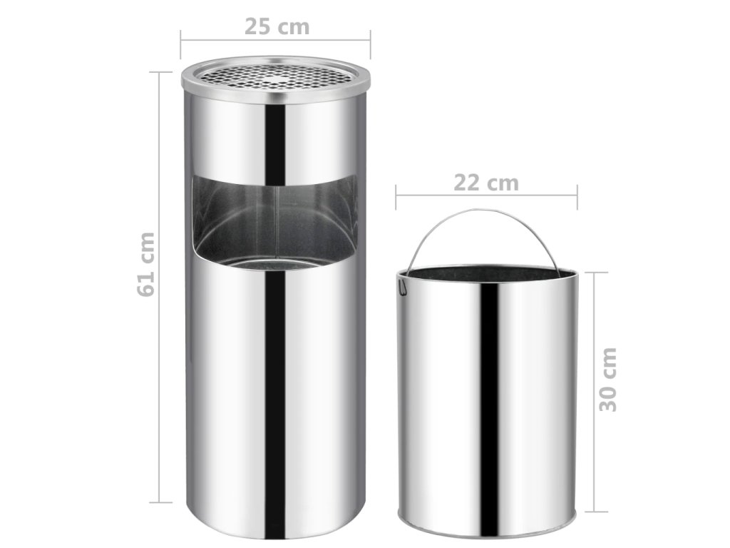 Náš kvalitný odpadkový kôš s popolníkom sa vyznačuje elegantným dizajnom s popolníkom a má nielen sofistikovaný dizajn, ale zaboduje aj svojou funkčnosťou. Odpadkový kôš má objemnú nádobu na odpadky a navyše je v hornej časti vybavený popolníkom, ktorý je vhodný na použitie vo vnútorných i vonkajších priestoroch, ako napr. v hoteloch, reštauráciách, pred domom, v kanceláriách či iných verejných miestach.