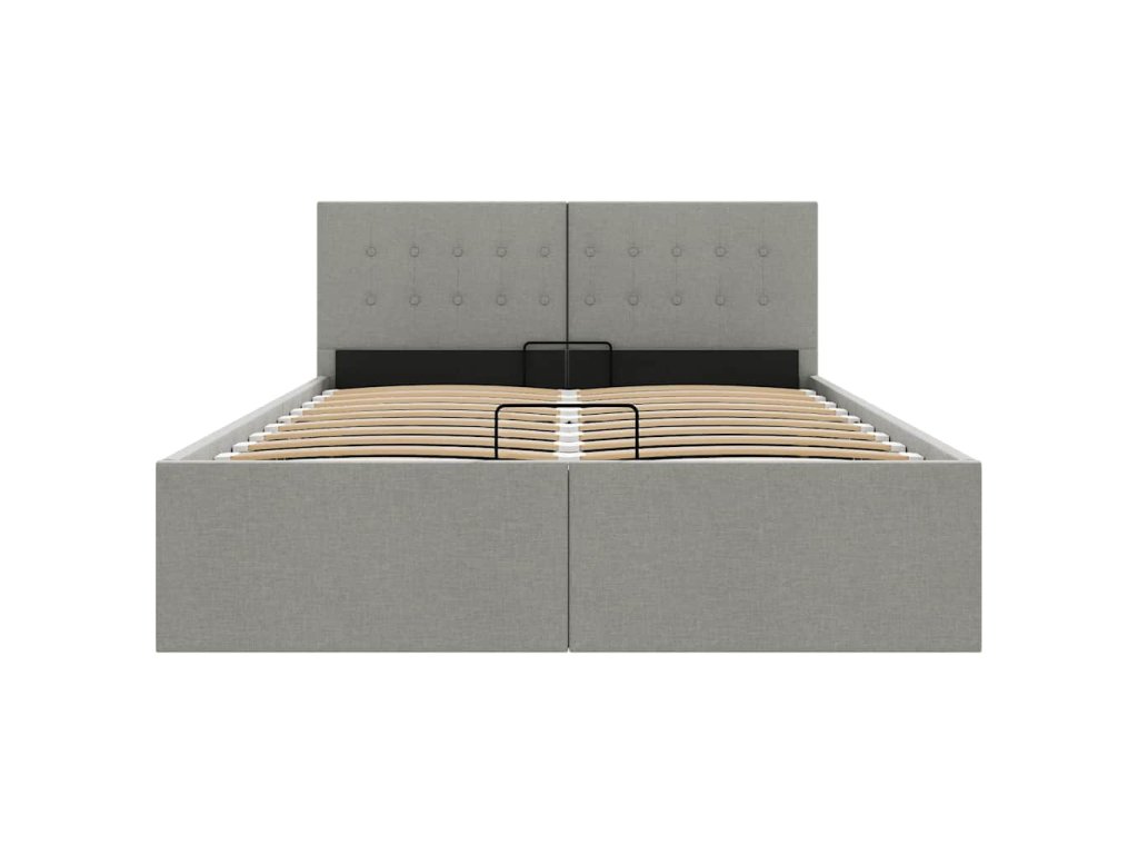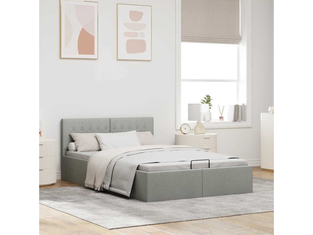 Oceľový rám s práškovou povrchovou úpravou a rošty z preglejky posteli dodávajú potrebnú pevnosť a odolnosť. Posteľ s úložným priestorom je potiahnutá príjemnou a trvácnou látkou, ktorá sa ľahko udržiava. Výrobok sa jednoducho montuje. Vhodné rozmery matraca na túto posteľ sú 140 x 200 cm.