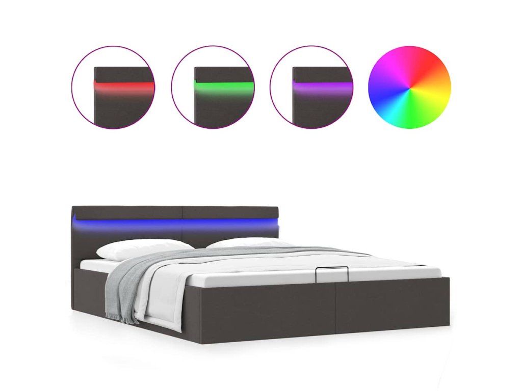 Oceľový rám s práškovou povrchovou úpravou a rošty z preglejky posteli dodávajú potrebnú pevnosť a odolnosť. Posteľ s úložným priestorom je potiahnutá príjemnou a trvácnou látkou, ktorá sa ľahko udržiava. Výrobok sa jednoducho montuje. Vhodné rozmery matraca na túto posteľ sú 160 x 200 cm. Okrem toho môžete pohodlne nastavovať výkon, jas a rôzne blikajúce farby LED svetelného pásika pomocou diaľkového ovládania a vytvoriť ohromujúcu svetelnú show.