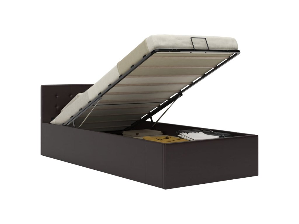 Tento hydraulický posteľný rám z umelej kože dodá vašej spálni pôsobivý moderný vzhľad! Táto jednolôžková posteľ sa vyznačuje jednoduchým, no zároveň štýlovým dizajnom a má pevnú konštrukciu z odolného a robustného MDF.