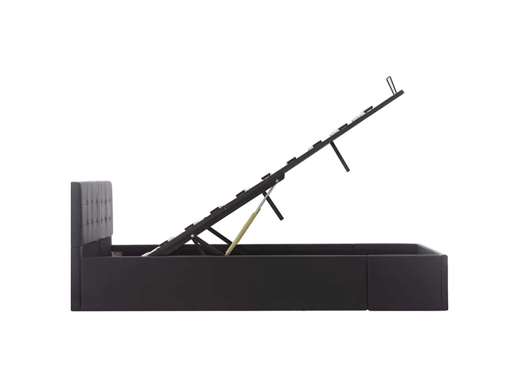 Tento hydraulický posteľný rám z umelej kože dodá vašej spálni pôsobivý moderný vzhľad! Táto manželská posteľ sa vyznačuje jednoduchým, no zároveň štýlovým dizajnom a má pevnú konštrukciu z odolného a robustného MDF.