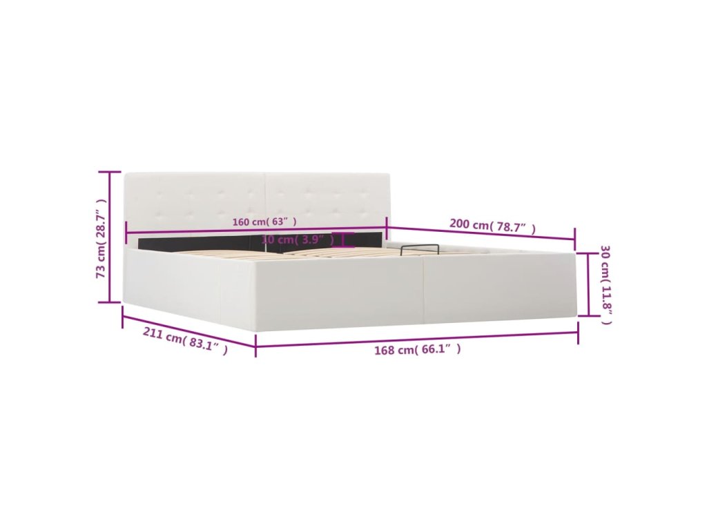 Oceľový rám s práškovou povrchovou úpravou a rošty z preglejky posteli dodávajú potrebnú pevnosť a odolnosť. Posteľ s úložným priestorom je potiahnutá lesklou umelou kožou, ktorá sa ľahko udržiava. Výrobok sa jednoducho montuje. Vhodné rozmery matraca na túto posteľ sú 160 x 200 cm.