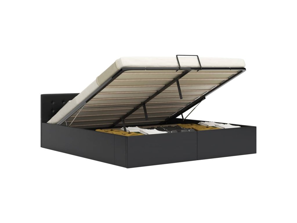 Oceľový rám s práškovou povrchovou úpravou a rošty z preglejky posteli dodávajú potrebnú pevnosť a odolnosť. Posteľ s úložným priestorom je potiahnutá lesklou umelou kožou, ktorá sa ľahko udržiava. Výrobok sa jednoducho montuje. Vhodné rozmery matraca na túto posteľ sú 160 x 200 cm.