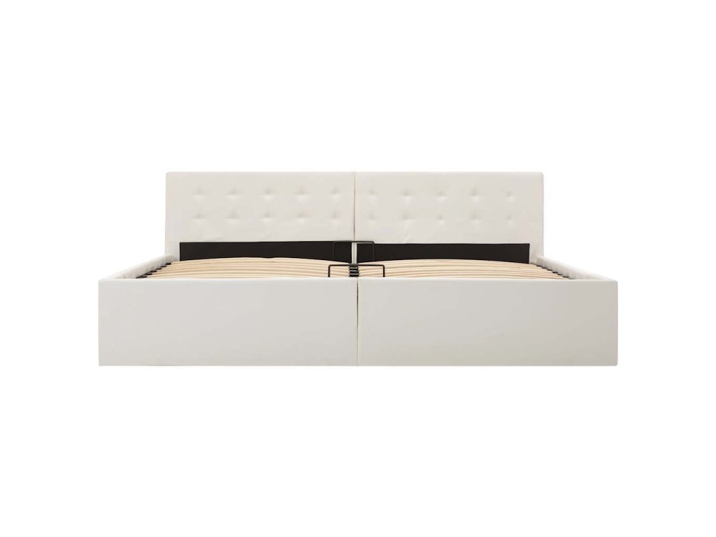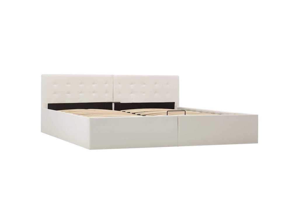 Tento hydraulický posteľný rám z umelej kože dodá vašej spálni pôsobivý moderný vzhľad! Táto manželská posteľ sa vyznačuje jednoduchým, no zároveň štýlovým dizajnom a má pevnú konštrukciu z odolného a robustného MDF.