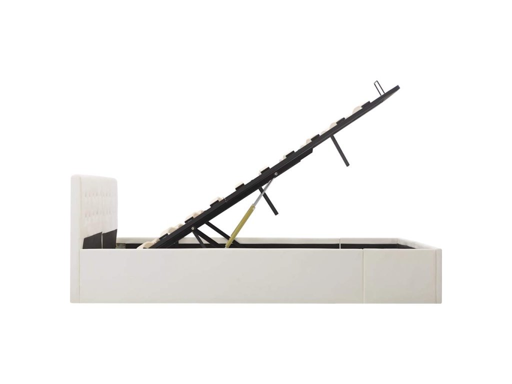Oceľový rám s práškovou povrchovou úpravou a rošty z preglejky posteli dodávajú potrebnú pevnosť a odolnosť. Posteľ s úložným priestorom je potiahnutá lesklou umelou kožou, ktorá sa ľahko udržiava. Výrobok sa jednoducho montuje. Vhodné rozmery matraca na túto posteľ sú 180 x 200 cm.