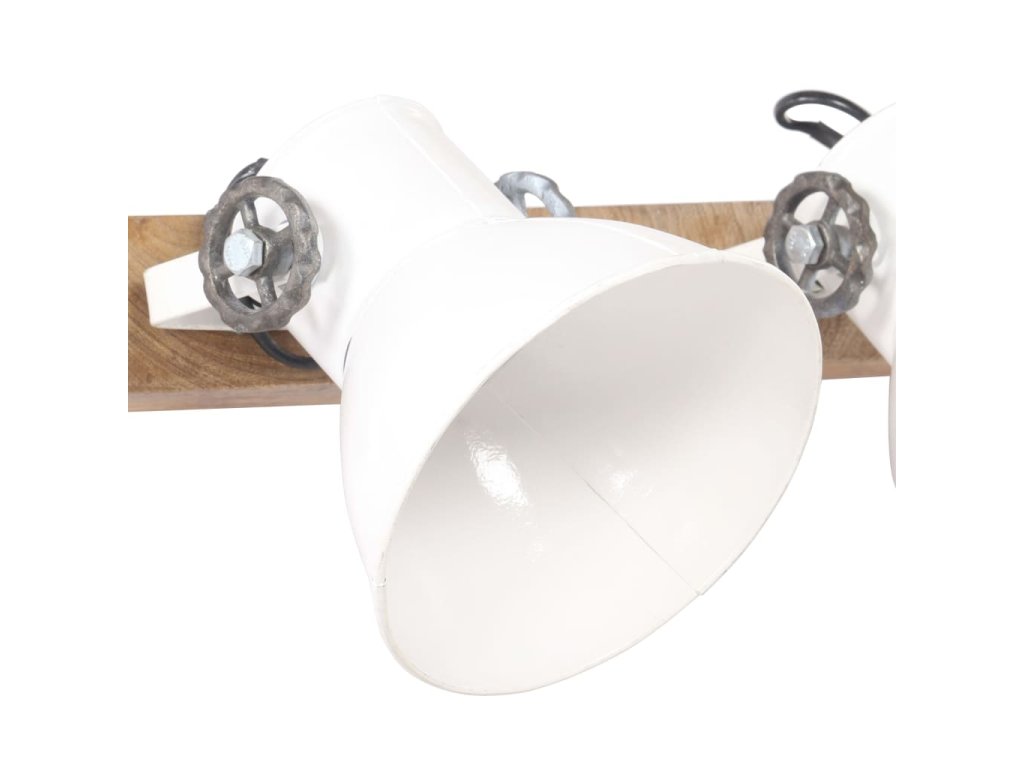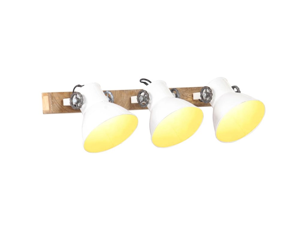 Železné tienidlá s bielou povrchovou úpravou a masívnym mangovníkovým drevom so zvetranou vidieckou hnedou povrchovou úpravou sa perfektne hodia interiéru vo vidieckom alebo priemyselnom štýle. Stropné lampy majú 3 tienidlá a objímku E27 pre žiarovku s maximálne 25 wattmi. Môžete si vybrať a nainštalovať žiarovky E27 s rôznymi farbami svetla, ktoré vytvoria atmosféru relaxácie a pokoja. Túto lampu môžete navyše pripevniť k stropu.