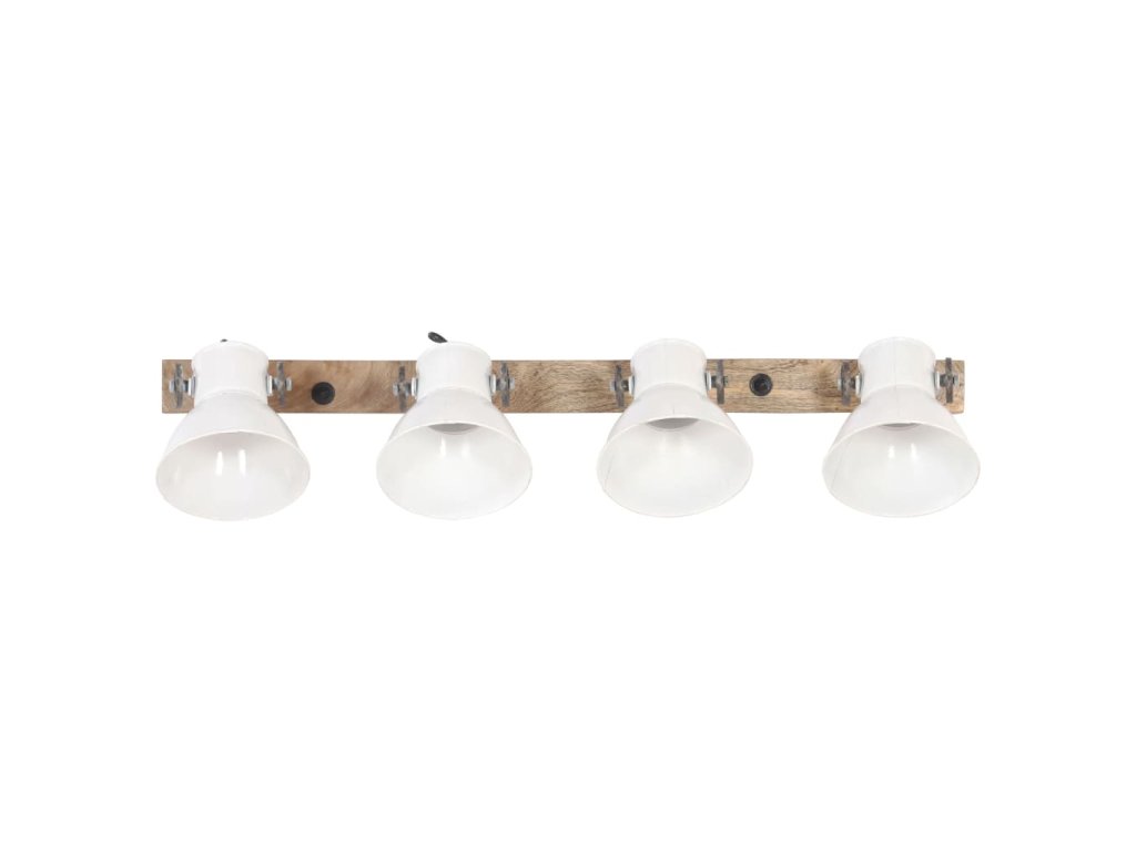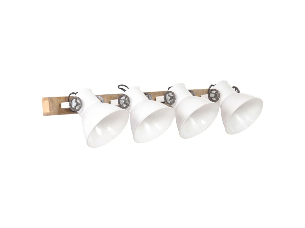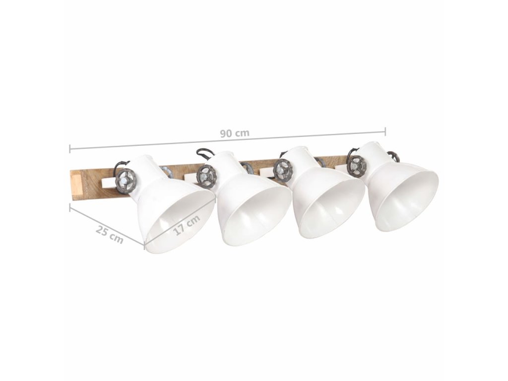 Železné tienidlá s bielou povrchovou úpravou a z masívneho mangovníkového dreva s povrchovou úpravou v zvetranej hnedej sa perfektne hodí do interiéru vo vidieckom alebo priemyselnom štýle. Stropné svietidlo so 4 tienidlami má objímku E27 pre žiarovku s maximálne 25 wattmi. Môžete si vybrať a nainštalovať žiarovky E27 s rôznymi farbami svetla, ktoré vytvárajú atmosféru relaxácie a pokoja.