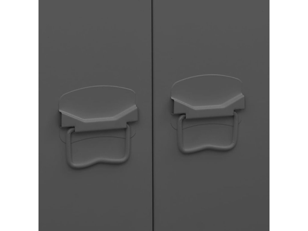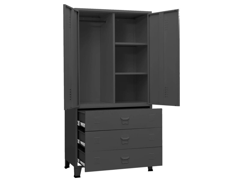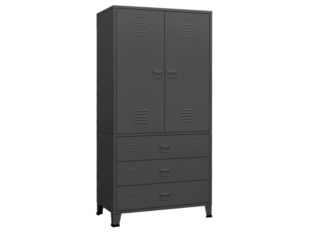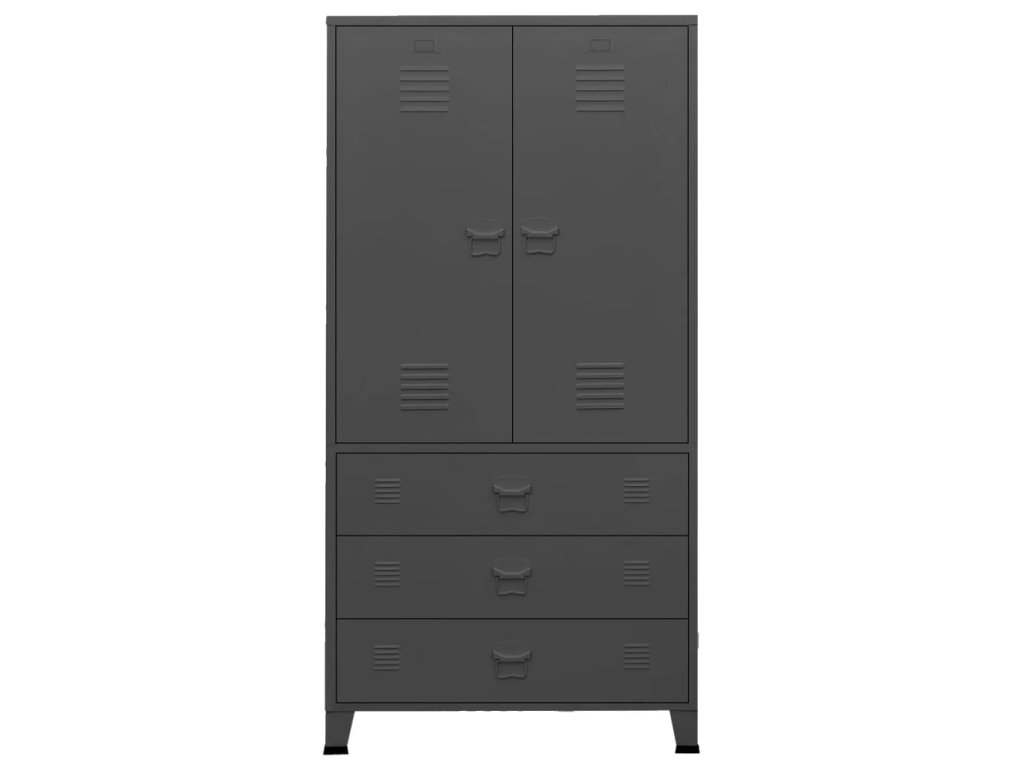 Táto skriňa je vyrobená z kovu, vďaka čomu je odolná a ľahko sa čistí. Má 2 police a 1 vešiak. Skriňa na oblečenie poskytuje veľké priehradky, ktoré vám ponúkajú dostatok úložného priestoru pre vaše dlhšie outfity, ale aj iné poskladané odevy alebo doplnky, ako sú svetre, džínsy, čiapky, kabelky atď. S menovkami a vetracími otvormi, ktoré podčiarkujú industriálny vzhľad, vám táto skrinka umožňuje triediť svoje položky. Navyše sa ľahko čistí vlhkou handričkou.