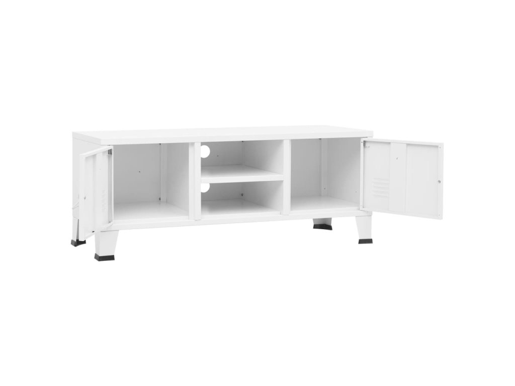 Vďaka kovovej konštrukcii je táto TV jednotka veľmi pevná a odolná. TV stolík má 2 dvierka a 1 policu, ktoré poskytujú dostatok úložného priestoru na uloženie a vystavenie vašich kníh, časopisov, DVD, váz a iných predmetov, ktoré budú dobre usporiadané a na dosah ruky. Každé dvierka sú vybavené držiakom na menovku a vetracími otvormi, ktoré vám umožnia prehľadne si veci roztriediť. Tieto detaily navyše podčiarkujú industriálny vzhľad. Okrem toho sú na zadnom paneli 2 otvory na usporiadanie káblov a elektronických zariadení. Ľahko sa čistí vlhkou handričkou.