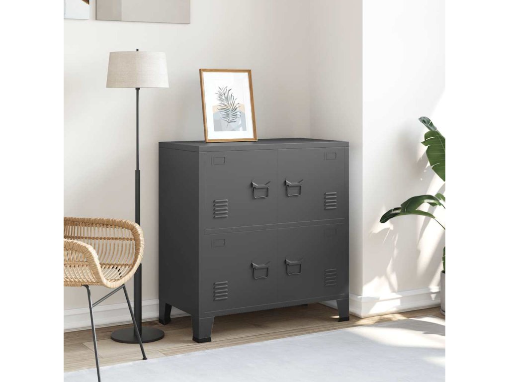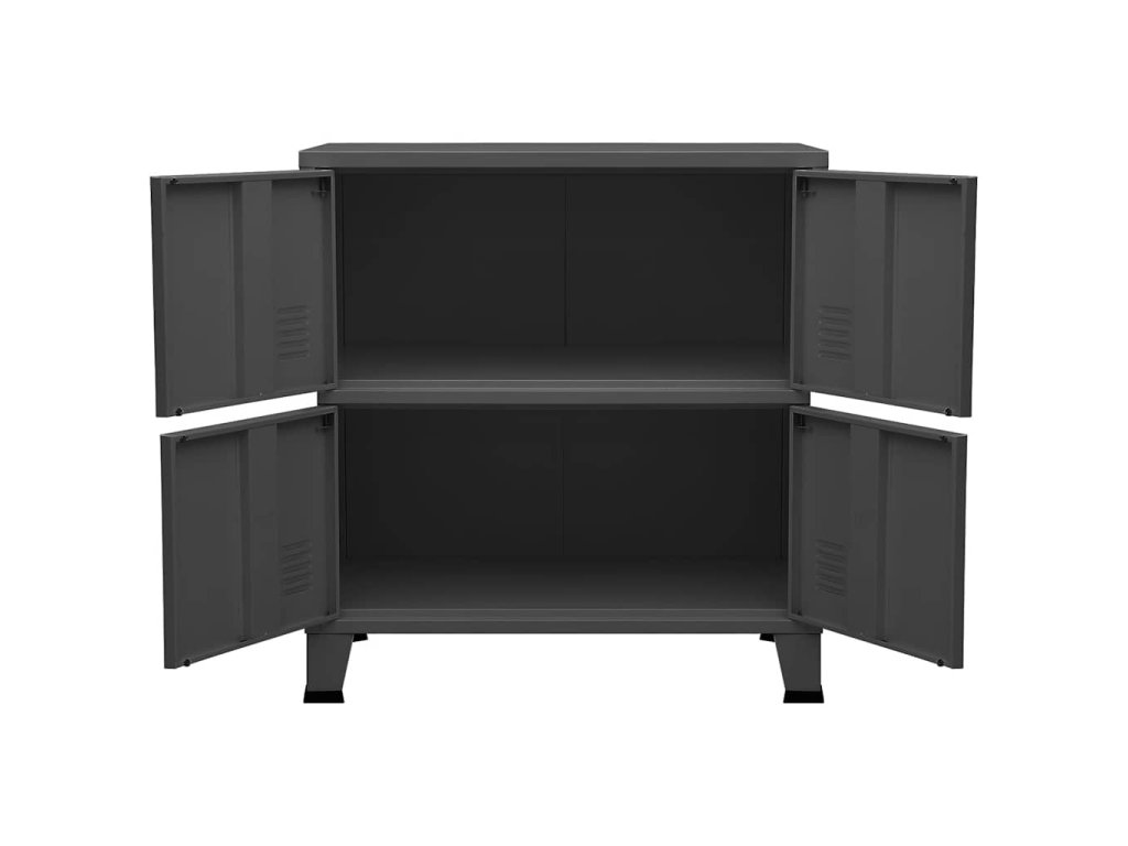 Úložná skrinka má policu a menovky na dvierkach, a tak vám umožní si prehľadne roztriediť všetky predmety do rôznych kategórií. Vďaka svojmu ikonickému dizajnu s industriálnym šarmom sa bude hodiť do každej kancelárie. Oceľové nohy s plastovými krytmi chránia podlahu pred škrabancami. Skrinka je vyrobená z ocele, vďaka čomu je trvácna a ľahko sa čistí. Obidve dvierka sú vybavené držiakom na menovku a vetracím otvorom, takže vám umožnia si všetko prehľadne odložiť a zároveň zvýrazňujú industriálny vzhľad skrinky.