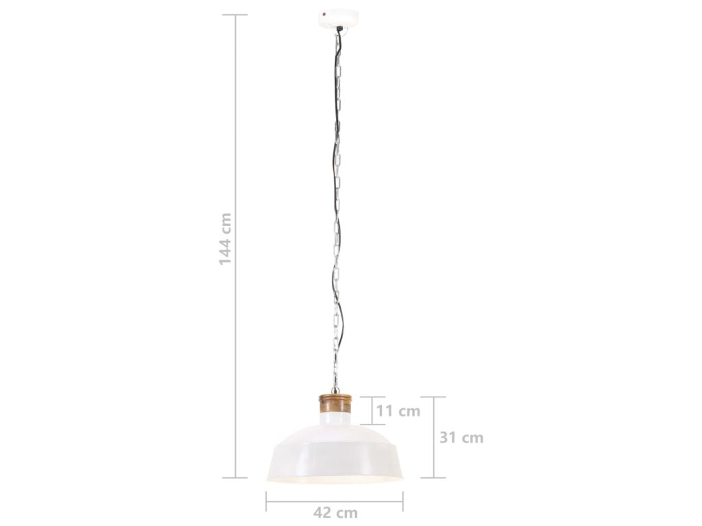 Železné tienidlá s matnou bielou povrchovou úpravou a mangový masív s prírodnou povrchovou úpravou sa budú dokonale hodiť do interiérov zariadených vo vidieckom aj industriálnom štýle. Stropná lampa má objímku E27 na žiarovku s maximálnym výkonom 25 wattov. Môžete si vybrať žiarovky s objímkou E27 s rôznymi farbami osvetlenia a vytvoriť tak v miestnosti príjemnú atmosféru ako stvorenú na relax a odpočinok. Poznámka: Ide o lampu v industriálnom štýle a na jej tienidle sa môžu vyskytnúť určité nedokonalosti, ktoré jej dodávajú jedinečný a charakteristický surový vzhľad. Žiarovky nie sú súčasťou balenia.