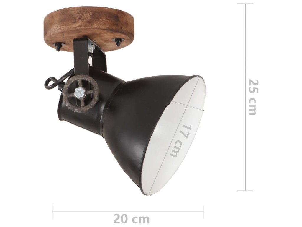 Železné tienidlá s čiernou povrchovou úpravou a mangový masív so starovidieckou povrchovou úpravou v hnedej farbe sa budú dokonale hodiť do interiérov zariadených vo vidieckom aj industriálnom štýle. Stropné lampy majú objímky E27 na žiarovky s maximálnym výkonom 25 wattov. Môžete si vybrať žiarovky s objímkou E27 s rôznymi farbami osvetlenia a vytvoriť tak v miestnosti príjemnú atmosféru ako stvorenú na relax a odpočinok. Lampy navyše môžete namontovať aj na strop.