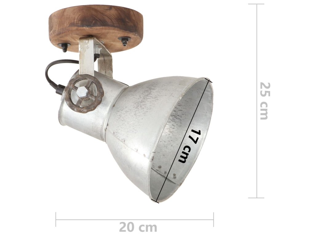 Železné tienidlá s vintage striebornou povrchovou úpravou a masívnym mangovníkovým drevom so zvetranou vidieckou hnedou povrchovou úpravou sa perfektne hodia do interiéru vo vidieckom alebo priemyselnom štýle. Stropné lampy majú objímku E27 pre žiarovku s maximálne 25 wattmi. Môžete si vybrať a nainštalovať žiarovky E27 s rôznymi farbami svetla, ktoré vytvoria atmosféru relaxácie a pokoja. Túto lampu môžete pripevniť aj k stropu.