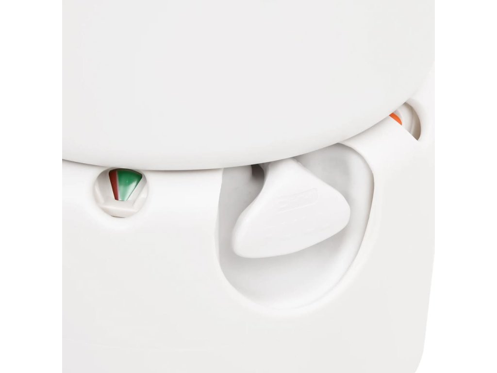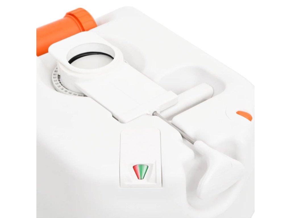 - Efektívne čistenie: Prenosné WC je vybavené piestovým čerpadlom, ktoré prepláchne misu oveľa čistejšie v porovnaní s vlnovcovým čerpadlom. Splachovanie typu T uľahčuje odstraňovanie odpadu.