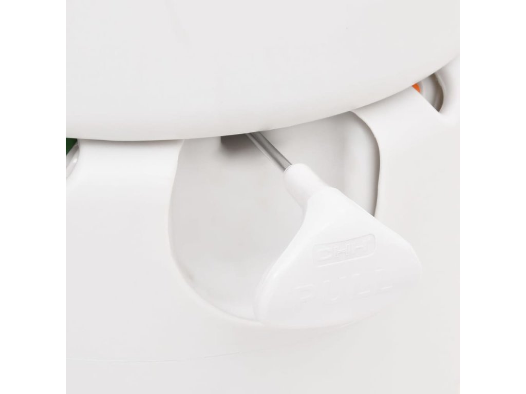 - Efektívne čistenie: Prenosné WC je vybavené piestovým čerpadlom, ktoré prepláchne misu oveľa čistejšie v porovnaní s vlnovcovým čerpadlom. Splachovanie typu T uľahčuje odstraňovanie odpadu.