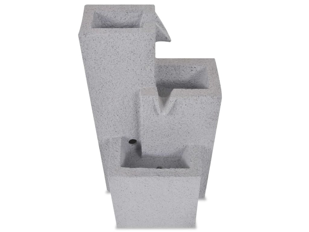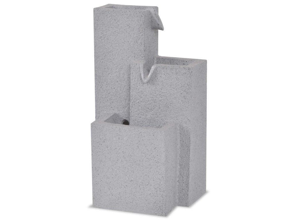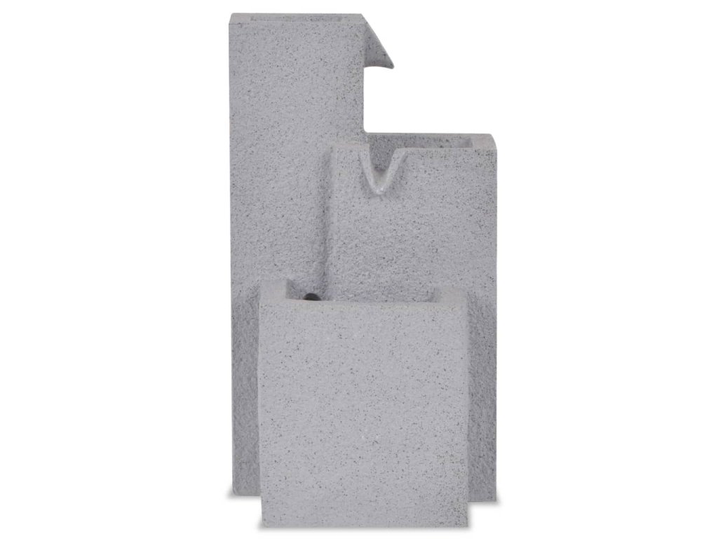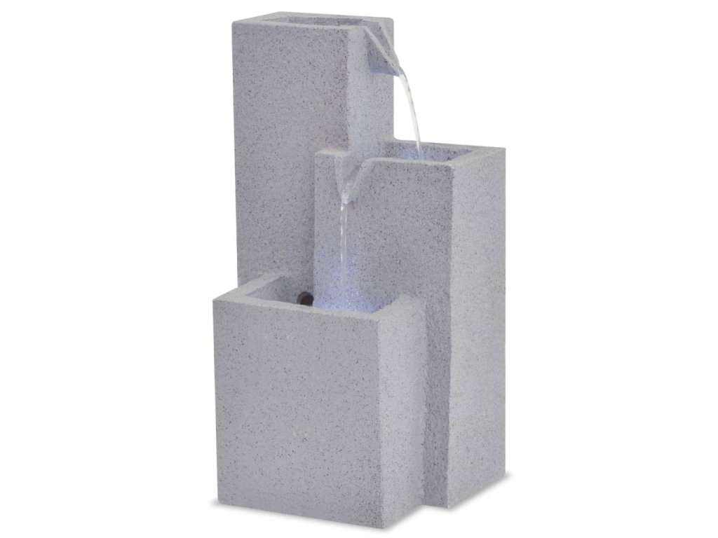 Fontána je vyrobená z polyresinu. Kaskádovitý prietok vody je osvetlený LED diódami, čo najmä v noci vytvára úžasný vizuálny efekt. Viaceré vodné prúdy a upokojujúci zvuk šumiacej vody vytvárajú relaxačnú a meditatívnu atmosféru. Vysoko kvalitné čerpadlo, ktoré sa nachádza v balení, zaisťuje bezpečnú a spoľahlivú prevádzku.