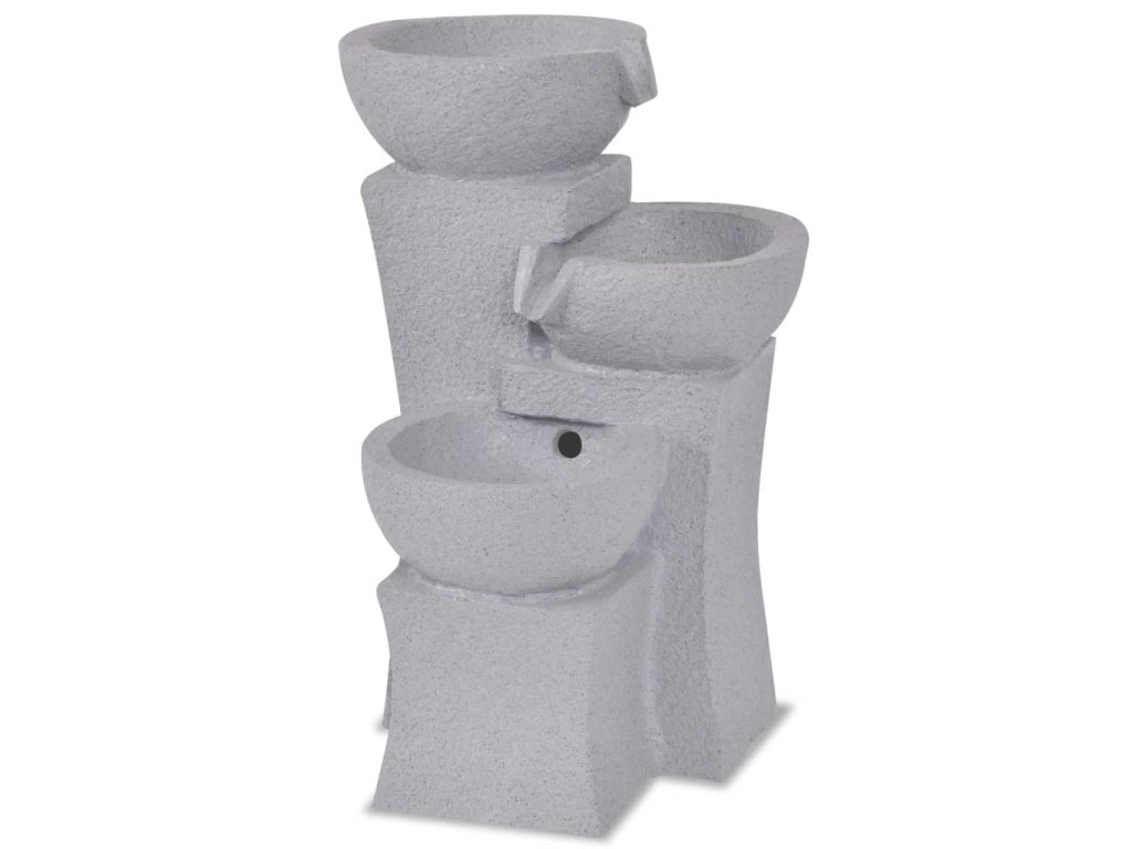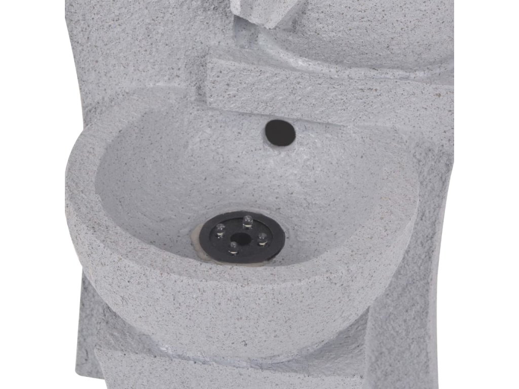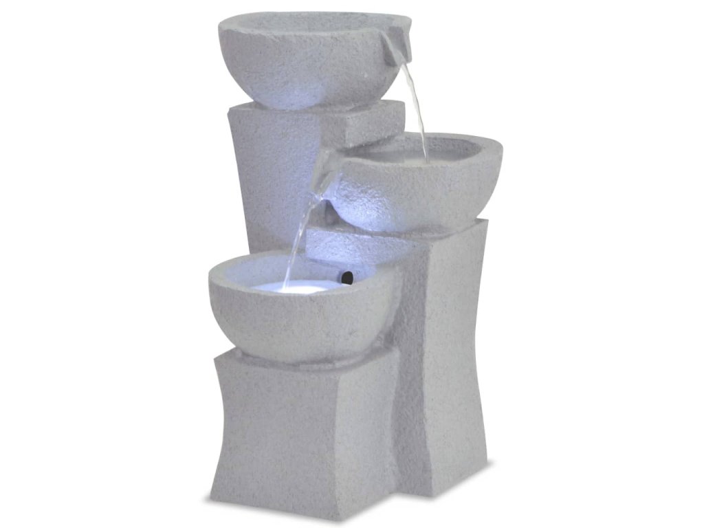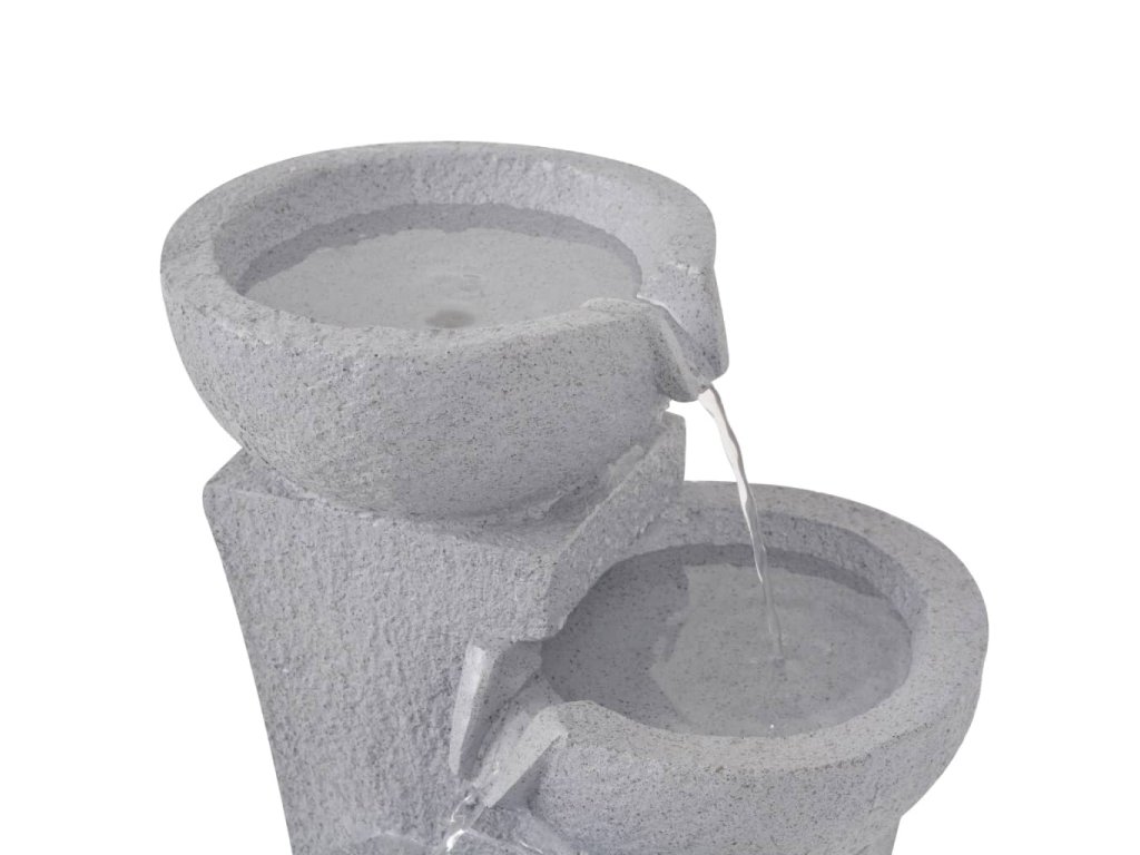 Fontána je vyrobená z polyresinu. Kaskádovitý prietok vody je osvetlený LED diódami, čo najmä v noci vytvára úžasný vizuálny efekt. Viaceré vodné prúdy a upokojujúci zvuk šumiacej vody vytvárajú relaxačnú a meditatívnu atmosféru. Vysoko kvalitné čerpadlo, ktoré sa nachádza v balení, zaisťuje bezpečnú a spoľahlivú prevádzku.
